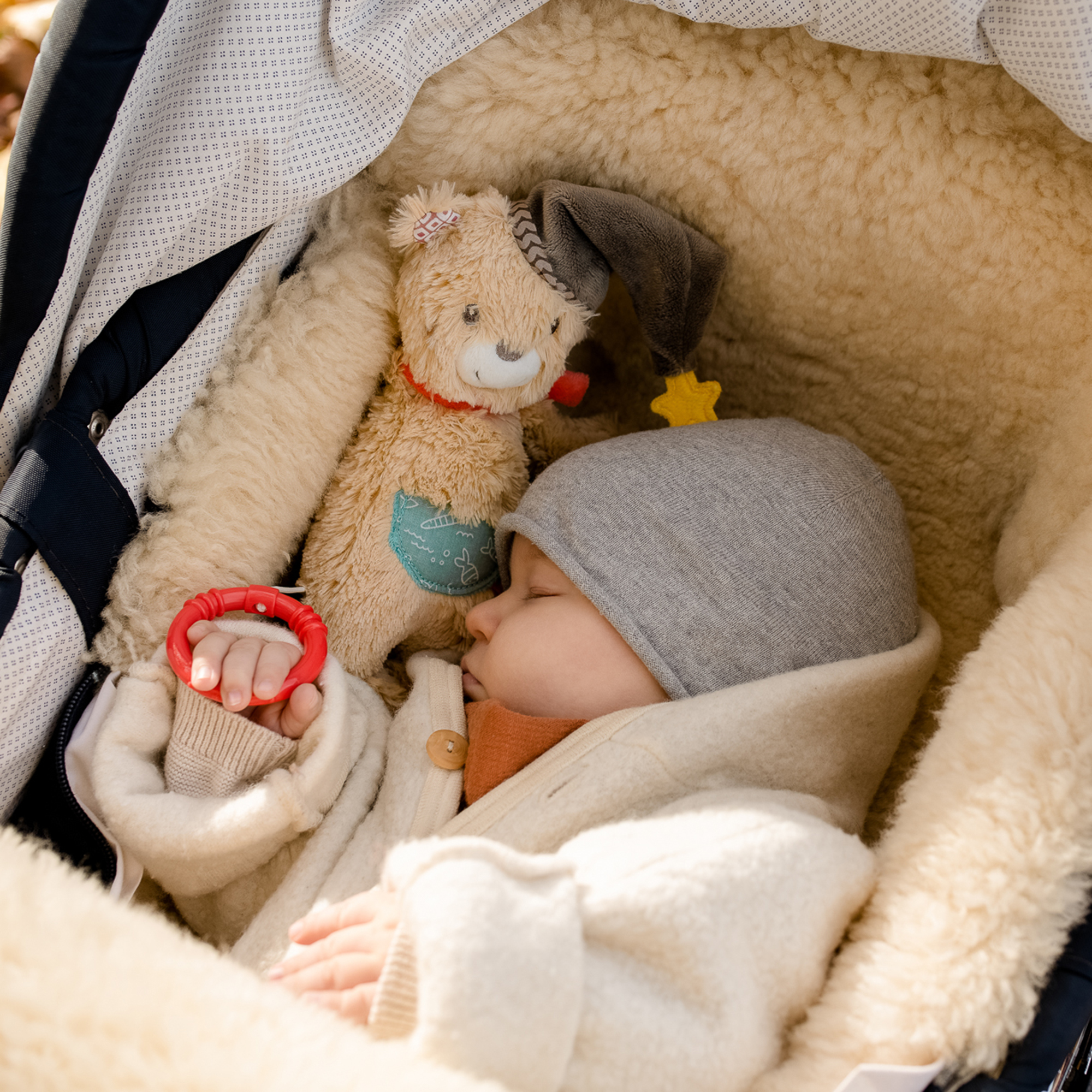 Ariu me gëzof nuk është vetëm një lodër ideale përkëdhelëse, por mund të ngjitet lehtësisht në krevat fëmijësh, karrocë fëmijësh ose karrocë fëmijësh – shoqëruesi i përsosur