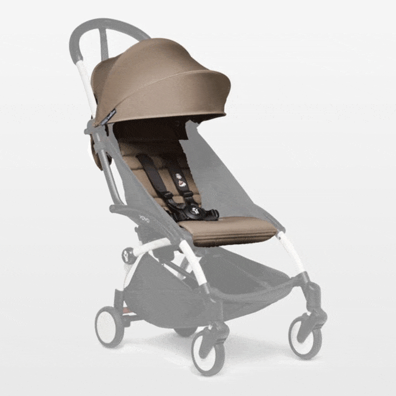 Paketë për bebe 6+ muajsh, e montueshme në YOYO2. Komode, e lehtë dhe e palosshme, me kapuç UPF 50+ dhe rrip sigurie.