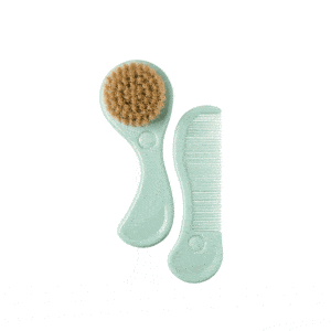 Ky set përbëhet nga një furçë me fije ultra të buta dhe një krehër me dhëmbë të rrallë, të dizajnuar posaçërisht për lëkurën dhe flokët e ndjeshëm të foshnjës. Furça ndihmon në masazhimin e lehtë të kokës dhe stimulon qarkullimin e gjakut, ndërsa krehëri është ideal për të hequr ngadalë çrregullimet e lehta apo koretnat e bebes.