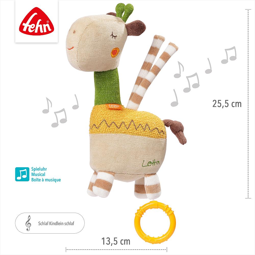 Gjirafa e vogël Lotta me siguri rrëmben zemrën e foshnjës: Loopy fton të përqafohet dhe të përqafohet, melodia “Schlaf Kindlein Schlaf” qetësohet dhe e përgjum foshnjën me qetësi dhe të strehuar në gjumë.