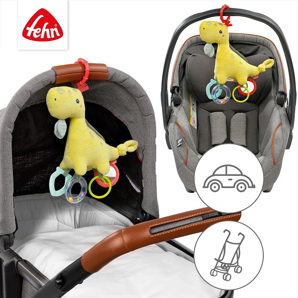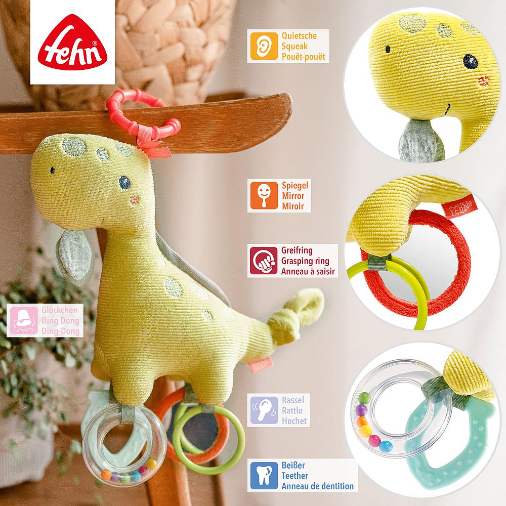 Fëmija mund të zbulojë veten me lojëra në pasqyrën e vogël dhe të krijojë zhurma qesharake me unazën e zhurmës, kërcitjen e fshehur dhe tingullin në dinosauri.
