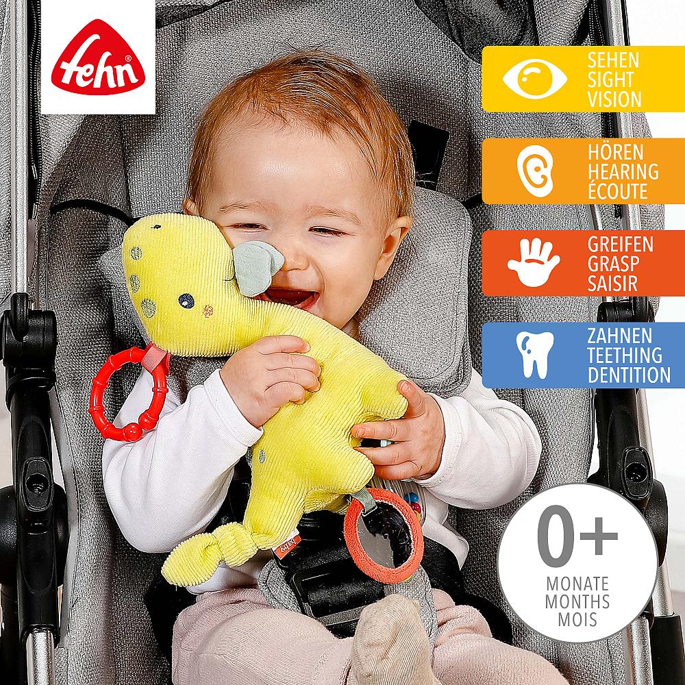 Ngjyrat e ndezura dhe varëse të ndryshme e ftojnë fëmijën të luajë dhe të eksplorojë: elementët e kapjes trajnojnë kapjen e vetëdijshme dhe dhëmbëzimi është i përsosur për fazën e daljes së dhëmbëve