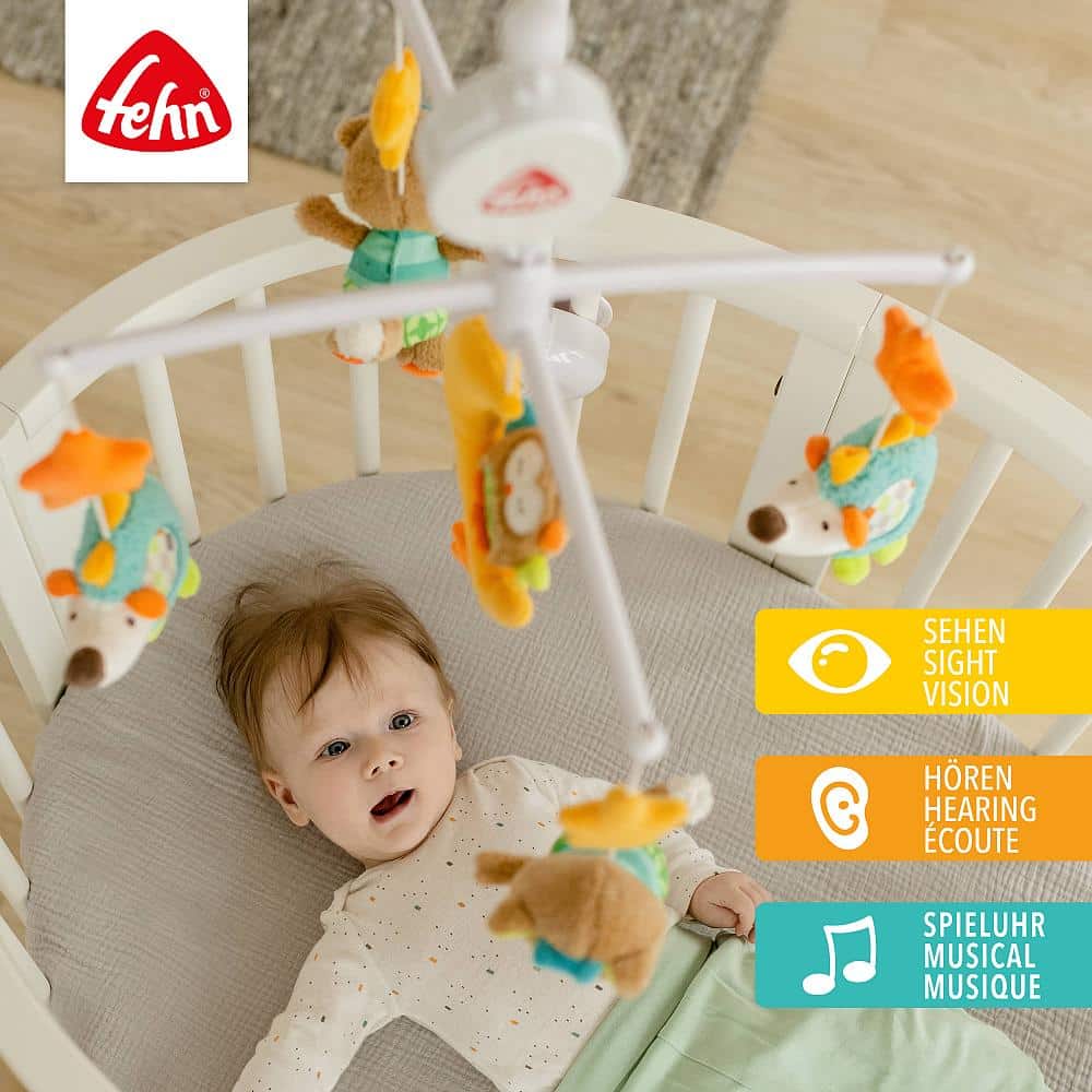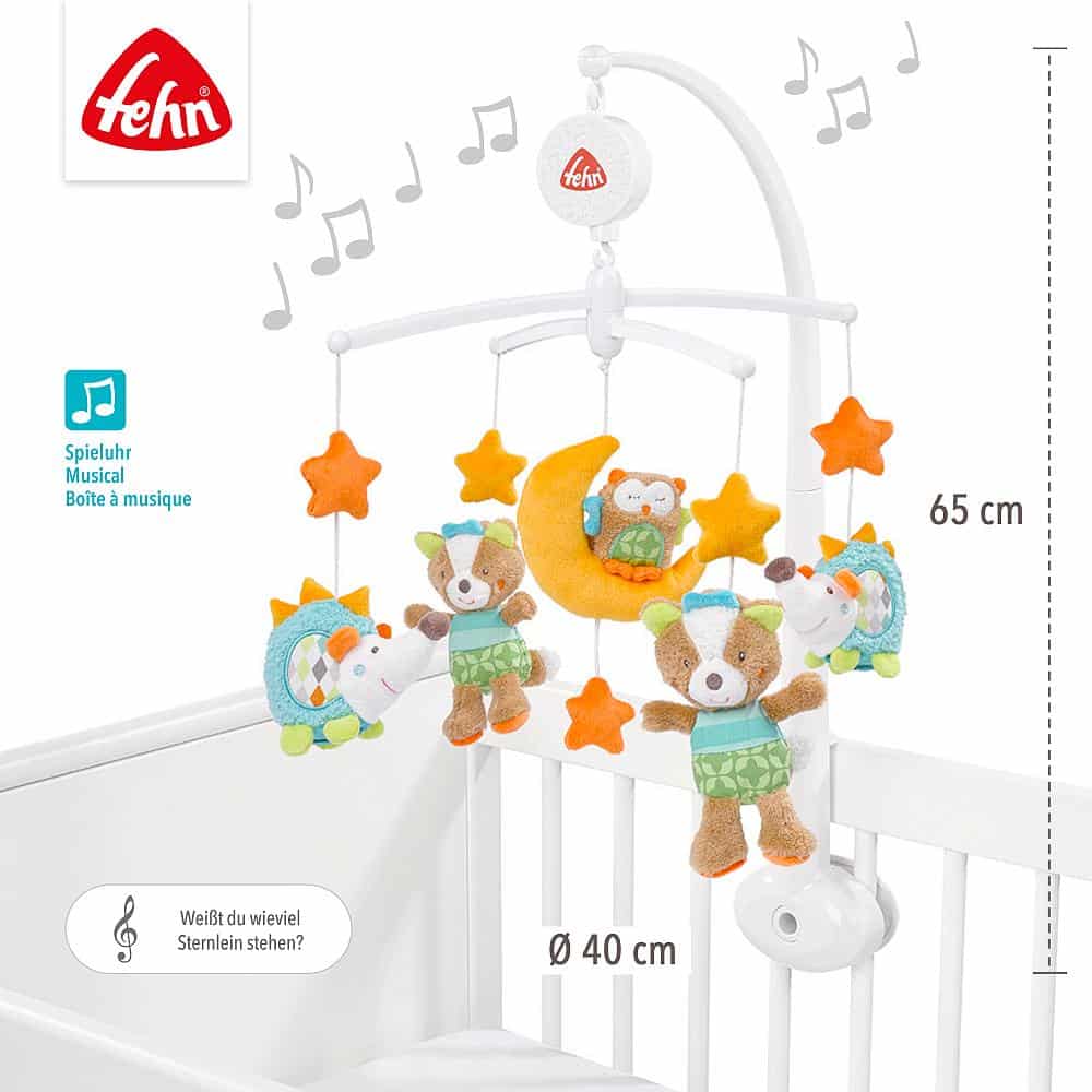 Dhelprat e lezetshme, iriqët dhe bufi rrotullohen me gëzim në ninullën “Weißt du wieviel Sternlein stehen” dhe tërheqin kureshtjen e foshnjës – në këtë mënyrë format dhe strukturat interesante frymëzojnë imagjinatën.