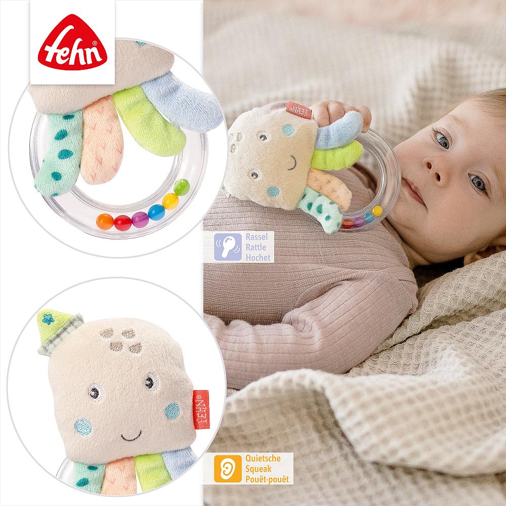 Lehtë për t’u kuptuar, krijon kuriozitet natyral dhe gjallëron për të tundur e për të luajtur: oktapodi me zhurmë unazë është shoqëruesi i përsosur për foshnjat që nga lindja.